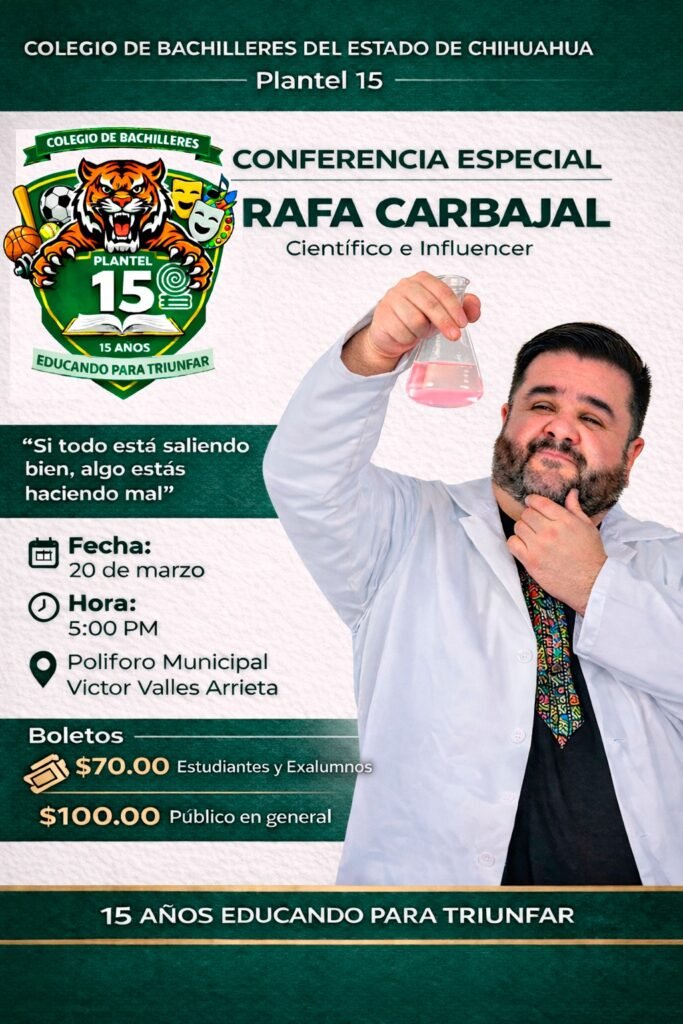 Camargo.– 19 de marzo del 2026. La comunidad educativa del Colegio de Bachilleres del Estado de Chihuahua se prepara para una gran celebración con motivo del 15 aniversario del Plantel 15.