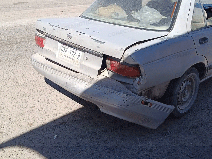 Camargo, Chih.- 22 de marzo de 2026. Un descuido al volante provocó un accidente vial la tarde de este domingo, luego de que la conductora de una camioneta Toyota Tacoma color blanca impactara por la parte trasera a un automóvil Nissan Tsuru modelo atrasado.