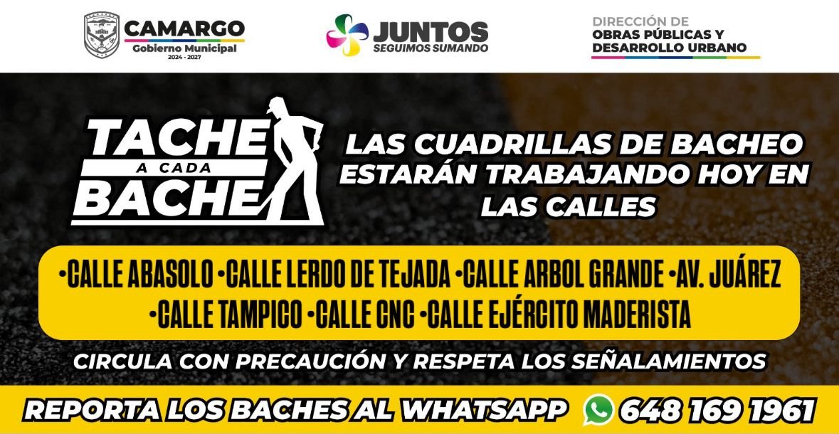 Cd. Camargo, Chih., 24 de Septiembre de 2025.- Se informa a la ciudadanía que por trabajos de bacheo permanecerán cerradas:
