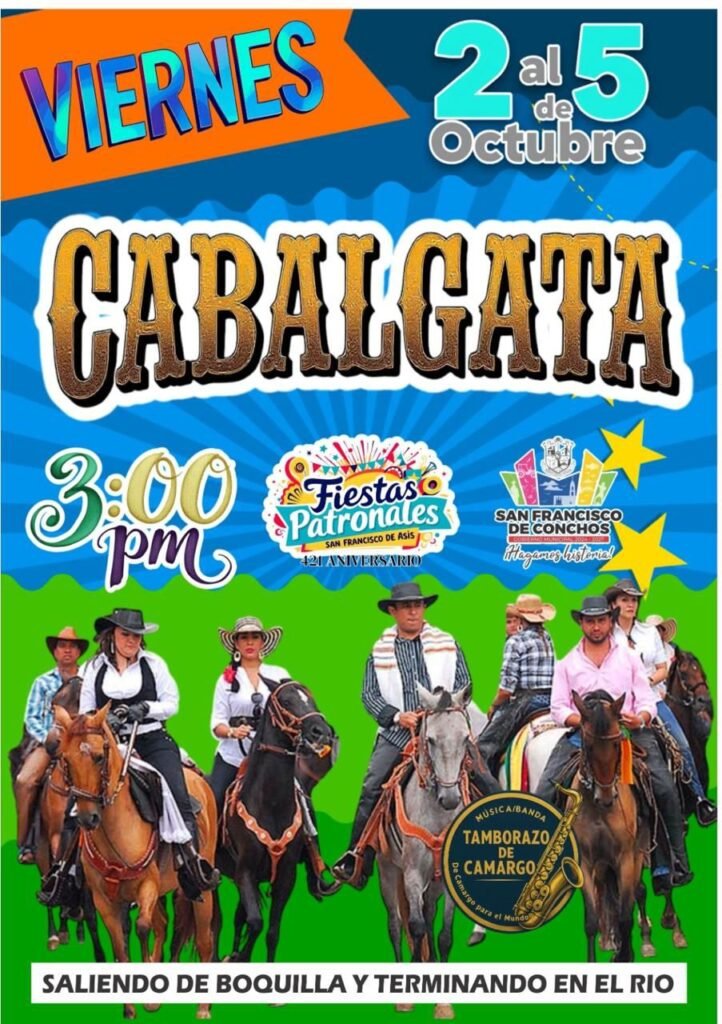 Cabalgata: El día más vaquero comienza a las 3:00 PM con la tradicional Cabalgata, que saldrá de Boquilla y culminará en El Río, ambientada por la Música de Banda del Tamborazo de Camargo.