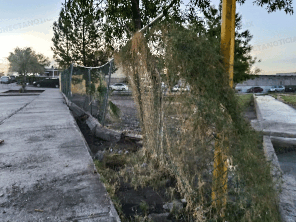 La cerca perimetral se encuentra destruida y la cancha de fútbol rápido apenas puede utilizarse en un 40%, lo que limita las actividades deportivas. Además, en una de las aulas del inmueble, vecinos denuncian que personas ajenas lo han tomado como dormitorio, lo que genera temor entre padres de familia debido a que los niños y adolescentes usan el lugar por las tardes y noches para practicar deporte.