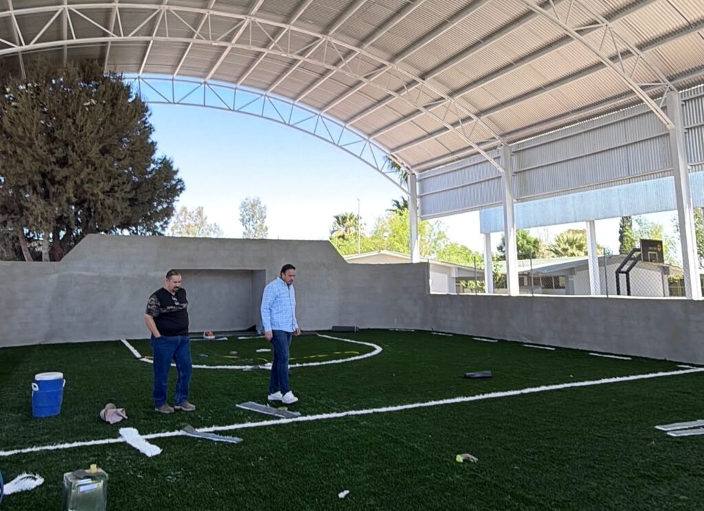 Camargo.- 30 de marzo del 2026. El Gobierno Municipal de Camargo y el Gobierno del Estado continúan fortaleciendo la infraestructura educativa en el municipio, con un avance del 80 por ciento en la instalación de una techumbre y una cancha de pasto sintético en la Escuela Secundaria 3063, obra que representa una inversión superior a 1 millón 300 mil pesos, proveniente en su mayoría de recurso estatal.