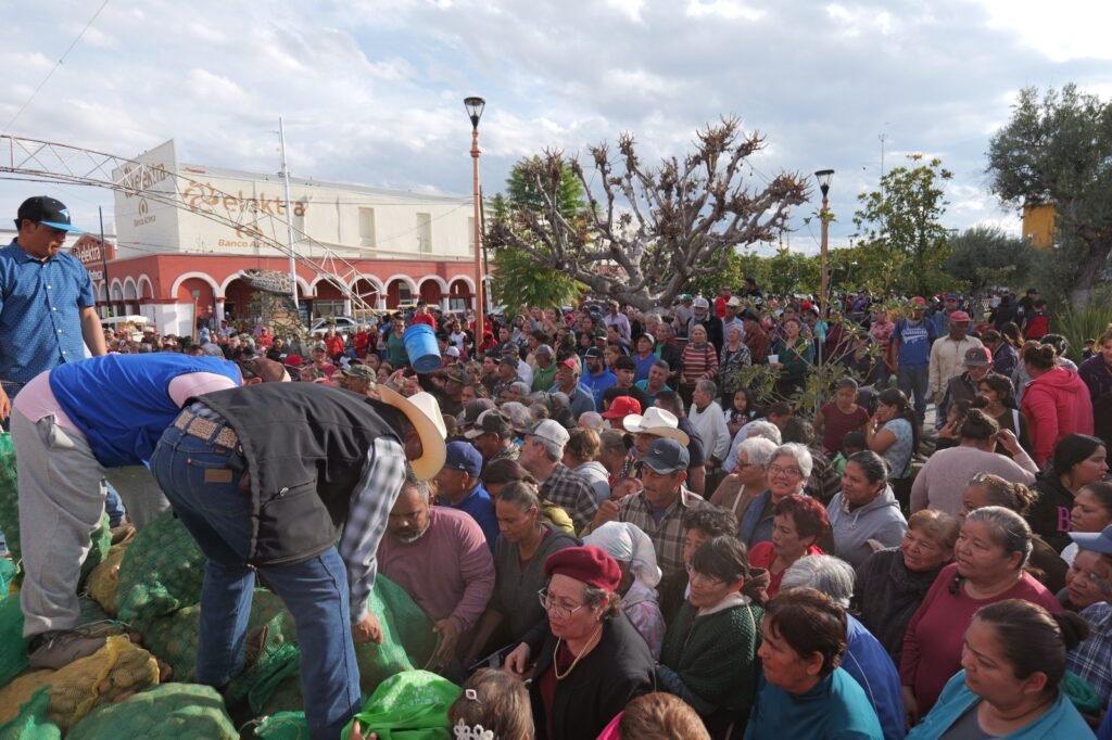 Jiménez, Chih., 23 de Enero de 2026.– Como parte de las acciones de apoyo social en el Distrito XX, se llevó a cabo una nueva entrega de papas totalmente gratuitas en el municipio de Jiménez, donde más de 2,500 personas se dieron cita en la plaza principal para recibir este beneficio.