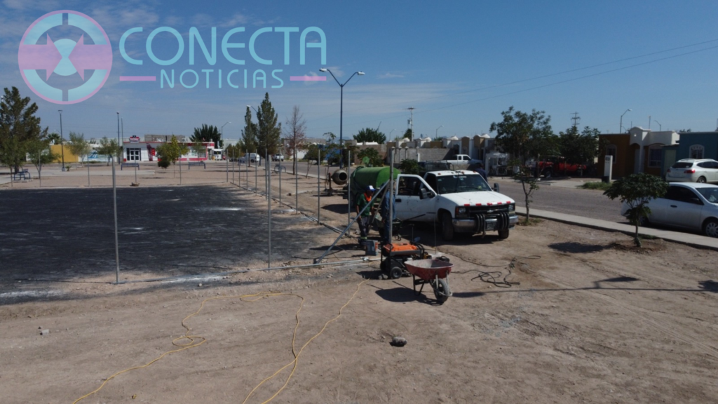 Actualmente, ya se concluyeron los trabajos de preparación e impregnación del terreno, y este día dieron inicio las labores de colocación de la malla perimetral que rodeará el campo.