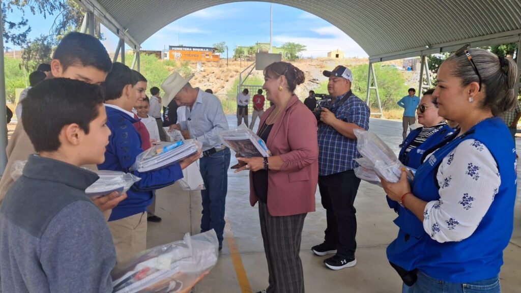 El evento se llevó a cabo en la plaza principal de San Francisco de Conchos, donde se distribuyeron apoyos a estudiantes desde preescolar hasta bachillerato, beneficiando a familias de toda la comunidad.