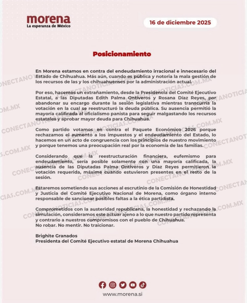 También asistieron la presidenta estatal de MORENA, Brigitte Granados, el diputado local Óscar Avitia y el alcalde de El Paso, Texas, Renard Johnson.