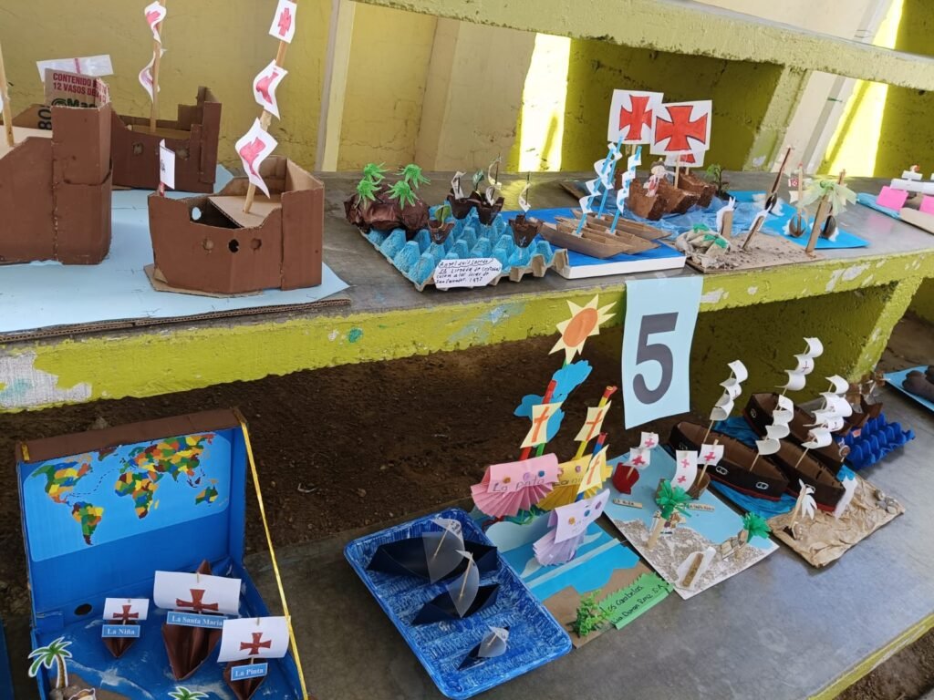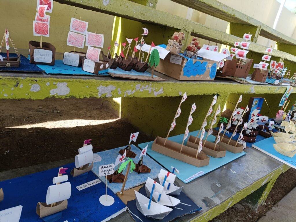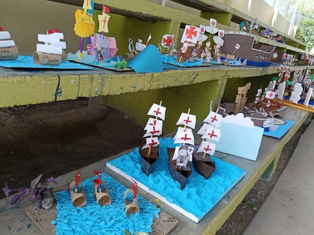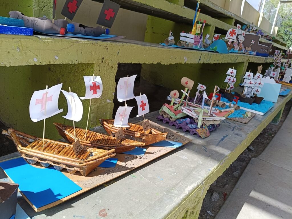 Camargo, Chih.- 10 de octubre de 2025. En un ambiente de color, creatividad y trabajo en familia, la escuela primaria Francisco I. Madero de Ciudad Camargo llevó a cabo una de sus tradiciones más significativas: la elaboración de caravelas con material reciclado, en el marco de la conmemoración del 12 de octubre, Día de la Nación Pluricultural.