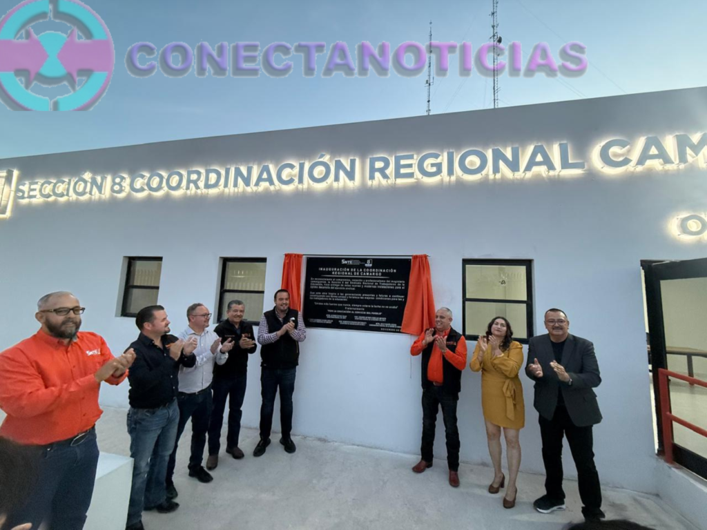 Cd. Camargo, Chih., 13 de Diciembre de 2025.- Durante la inauguración del nuevo salón de la Sección 8 del Sindicato Nacional de Trabajadores de la Educación (SNTE), el secretario general, Eduardo Zendejas, agradeció al presidente municipal Jorge Aldana por la rápida y eficiente gestión que permitió la donación del terreno donde hoy se levanta este espacio.
