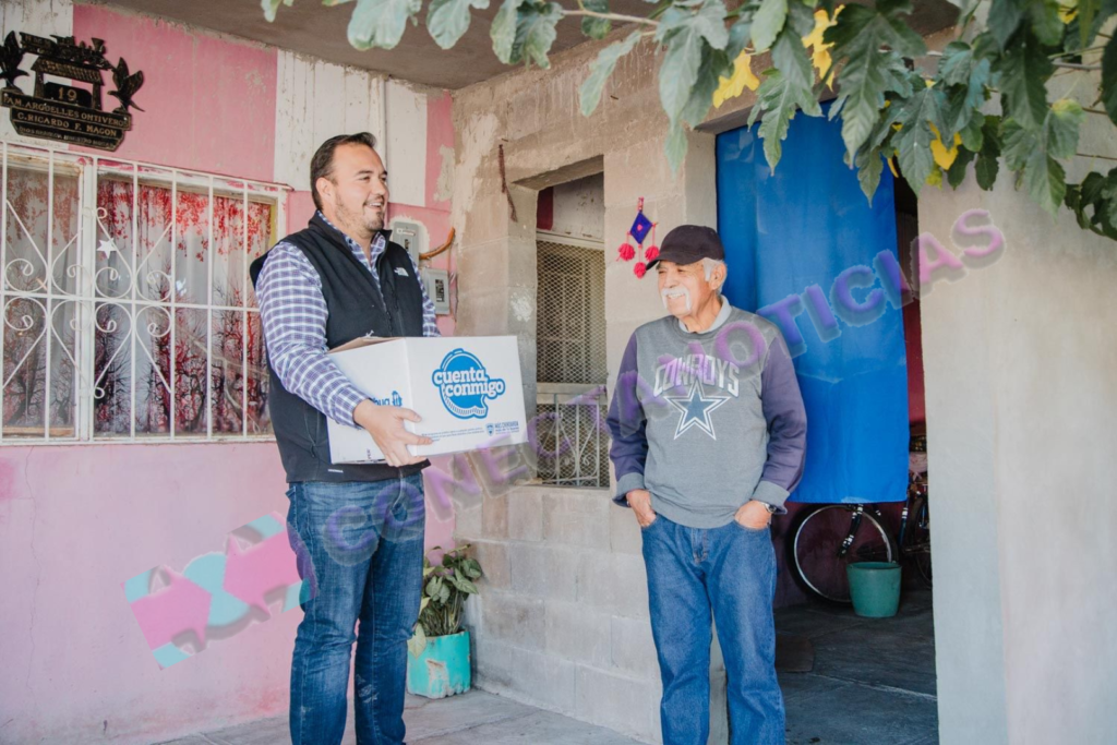 Cd. Camargo, Chih., 05 de Enero de 2026.- Como parte de las acciones de apoyo social y cercanía con la ciudadanía, el presidente municipal Jorge Aldana realizó una visita a don Jaime, a quien se le hizo entrega de despensas en beneficio de su familia.