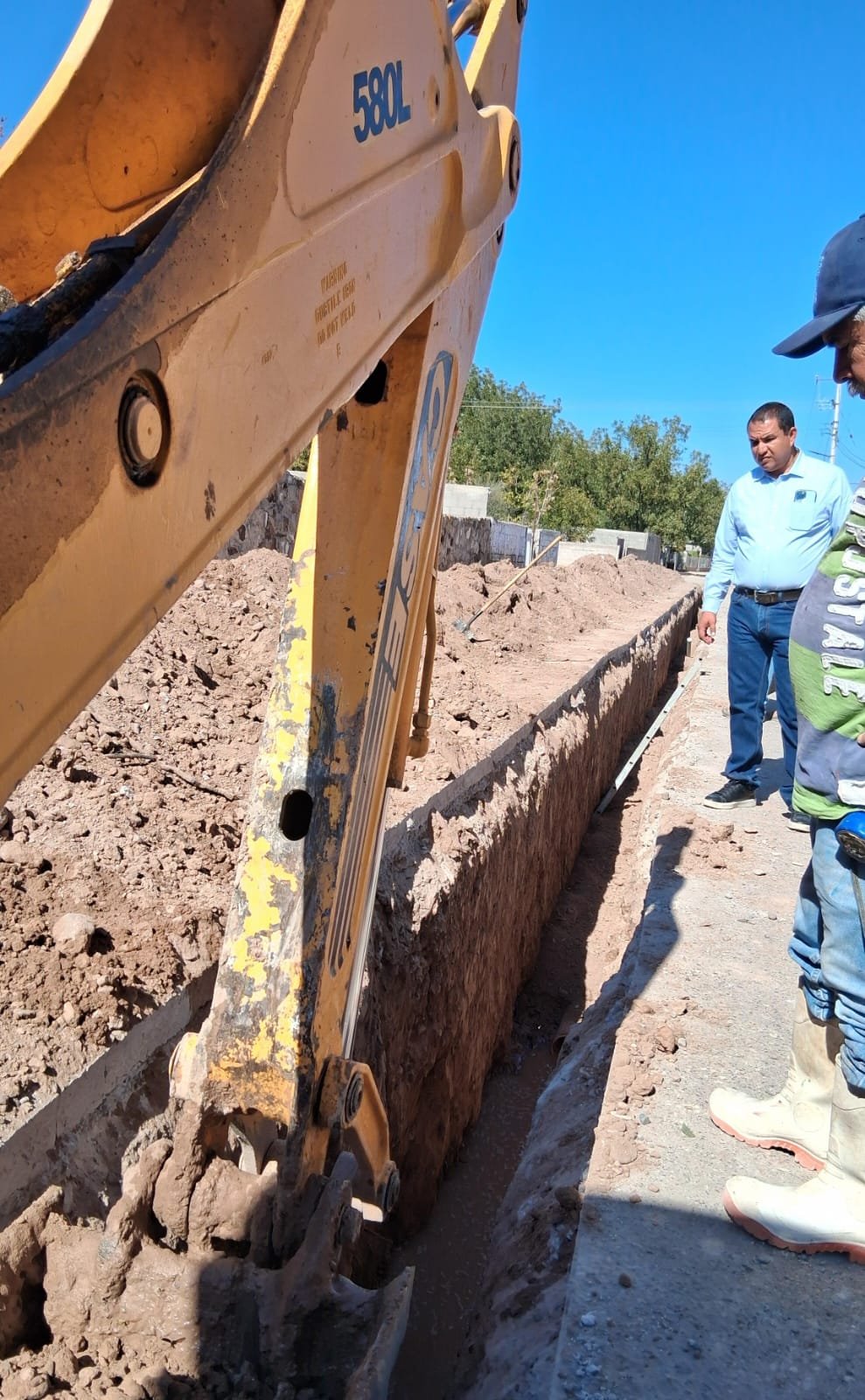 Sergio Olvera supervisa rehabilitación del drenaje sanitario en Corraleño de Juárez.