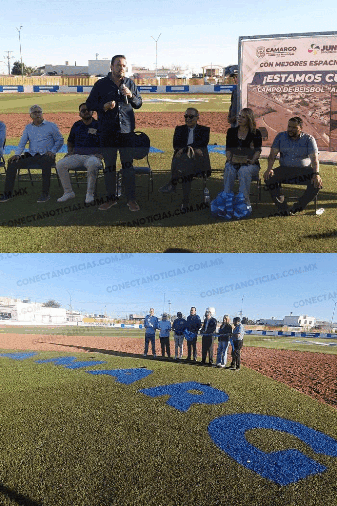 Camargo, Chih.– 25 de marzo de 2026.– En un ambiente de orgullo, emoción y compromiso con el deporte, autoridades municipales encabezadas por el alcalde Jorge Aldana llevaron a cabo la entrega de mejoras en un espacio deportivo, así como un reconocimiento al destacado beisbolista camarguense Arturo Rey Valles.