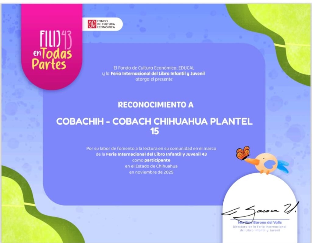 El reconocimiento fue otorgado a través del Fondo de Cultura Económica, EDUCAL y la Feria Internacional del Libro Infantil y Juvenil, donde tanto maestras como estudiantes del plantel formaron parte de las dinámicas enfocadas en el impulso del hábito lector.